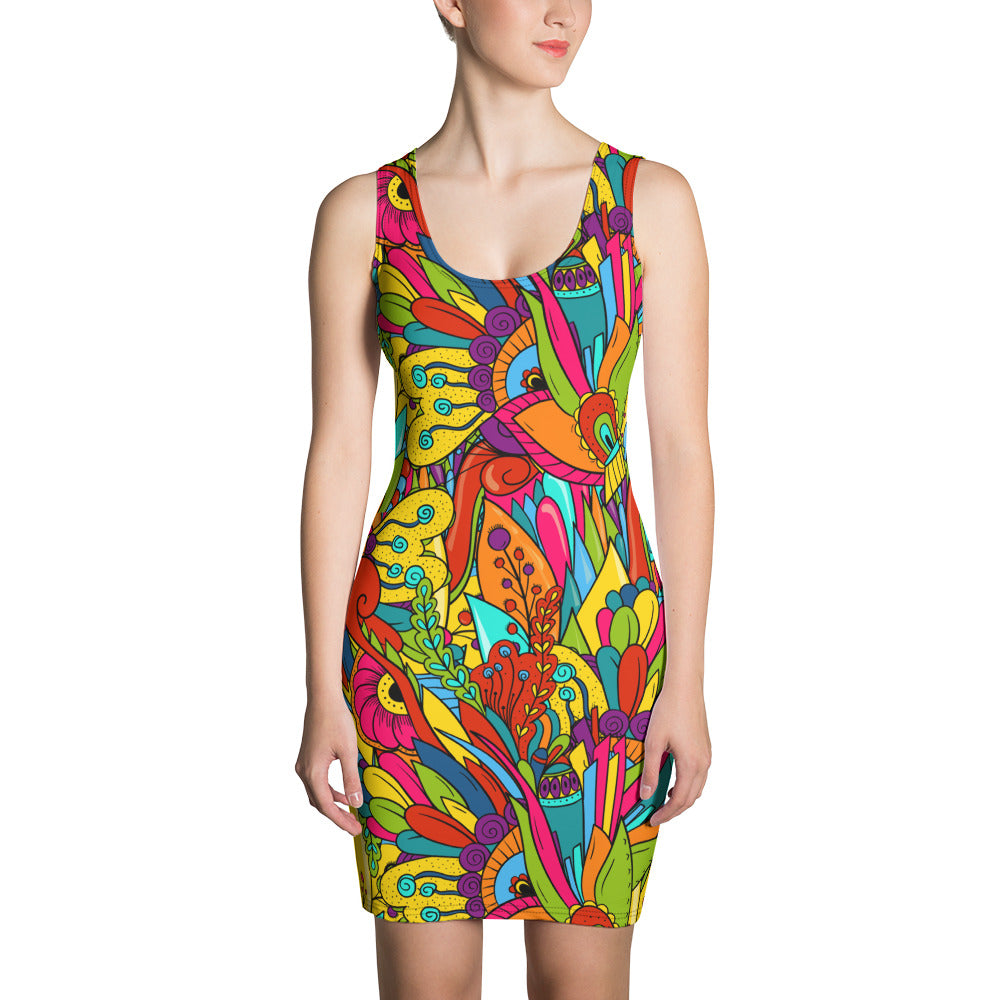 Make a statement and look fabulous in this all-over printed, fitted dress.
