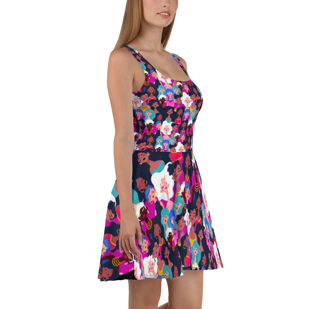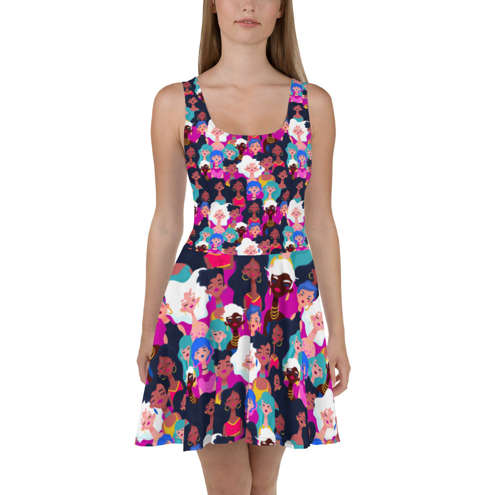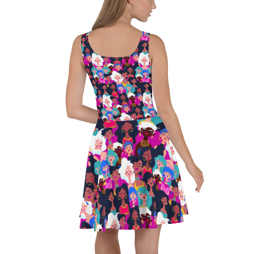 Skater Dress with Black Ladies Print