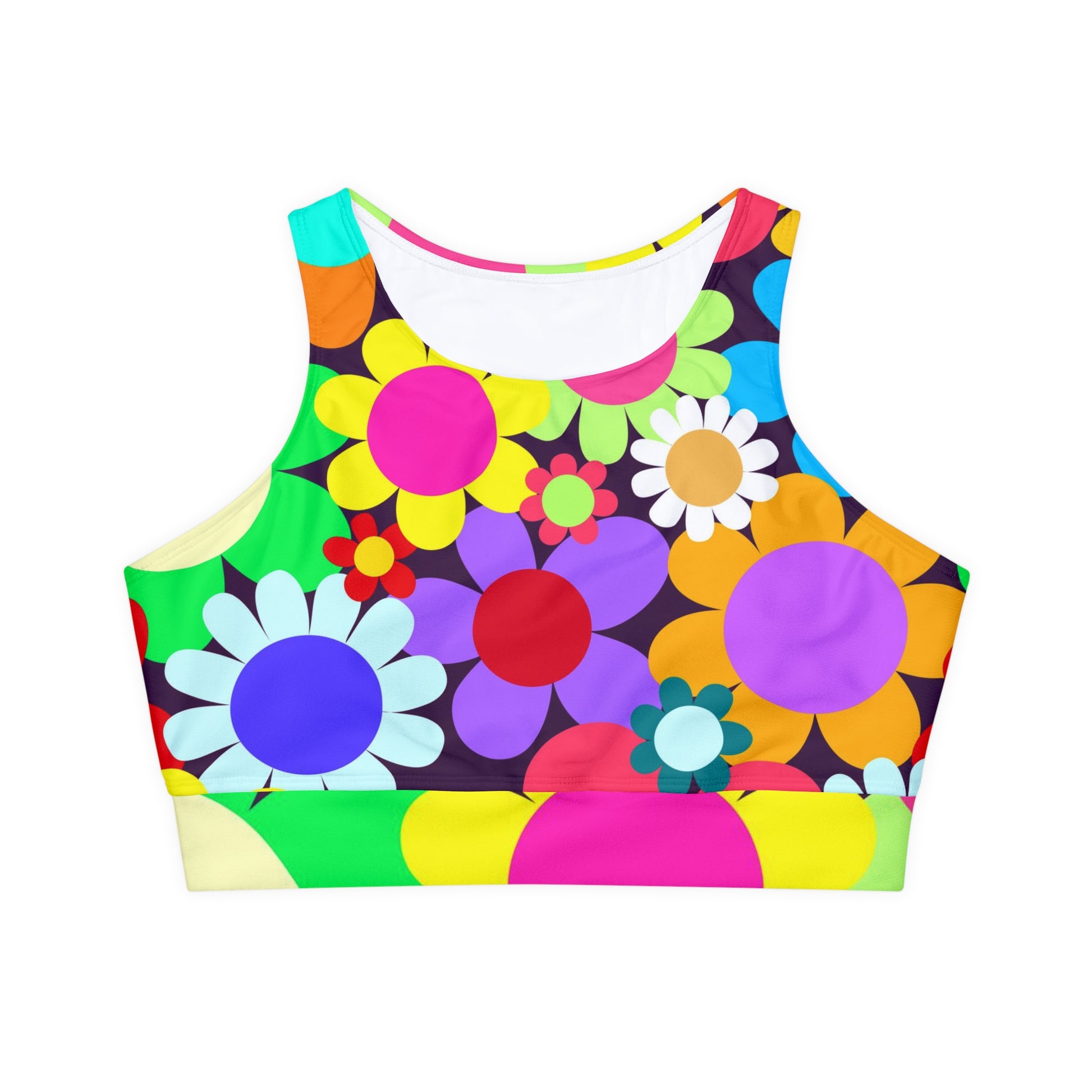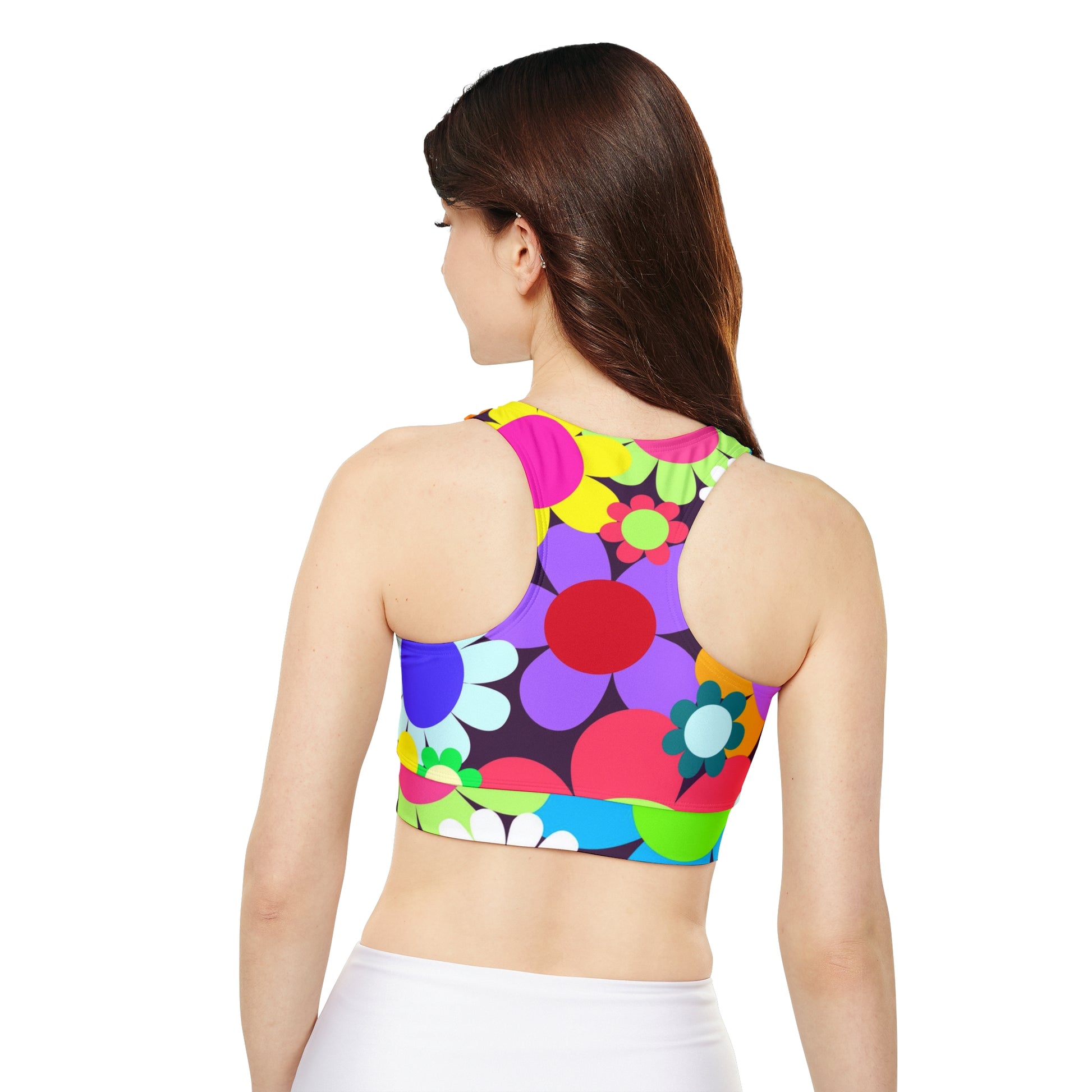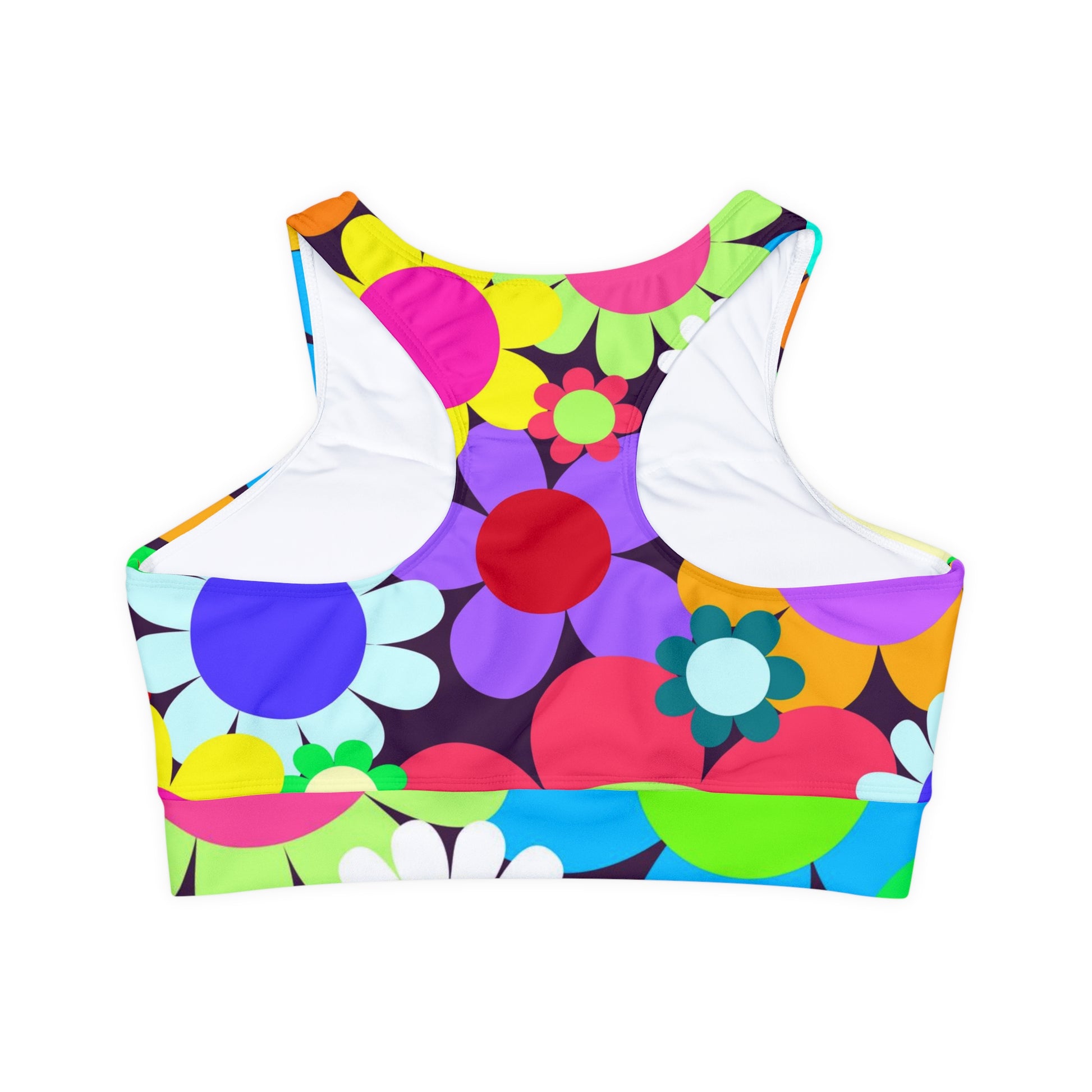 Soluvd Fully Lined, Padded Sports Bra (AOP) Happy Day