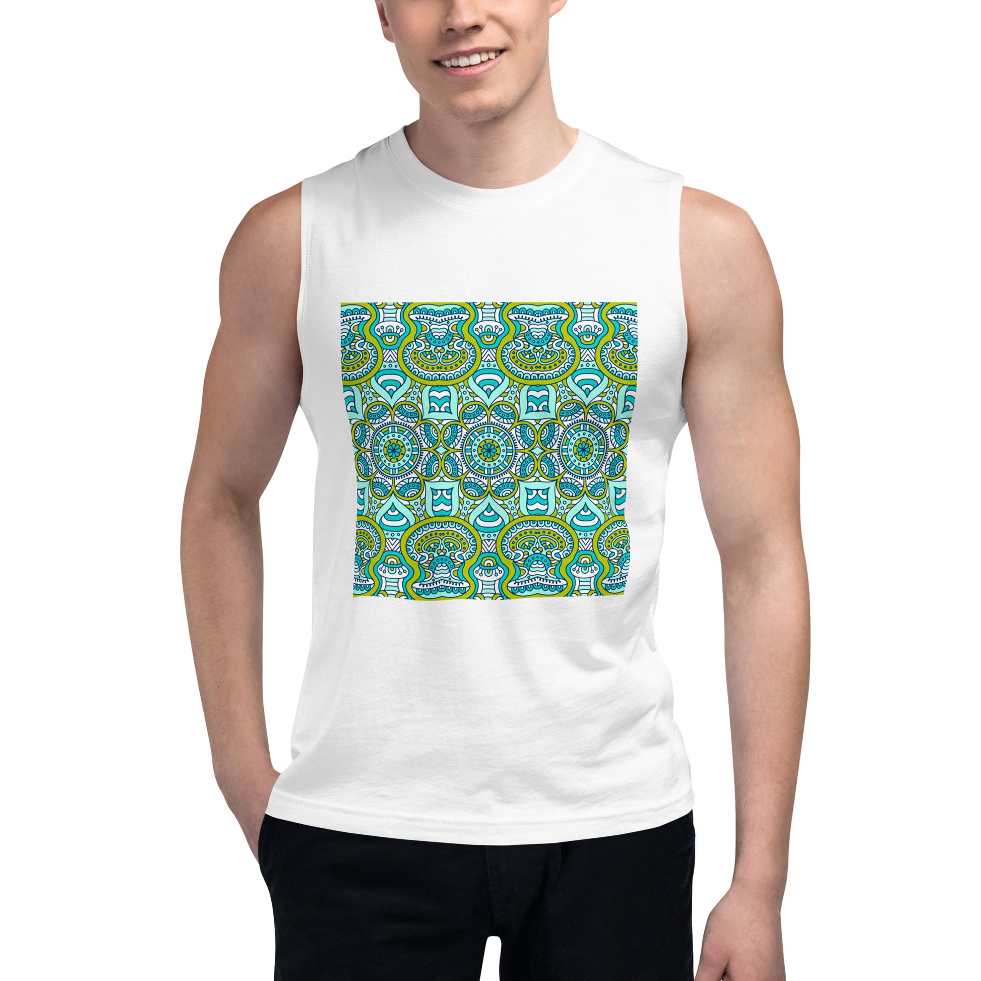 Unisex Muscle Shirt with Green Mandala Print